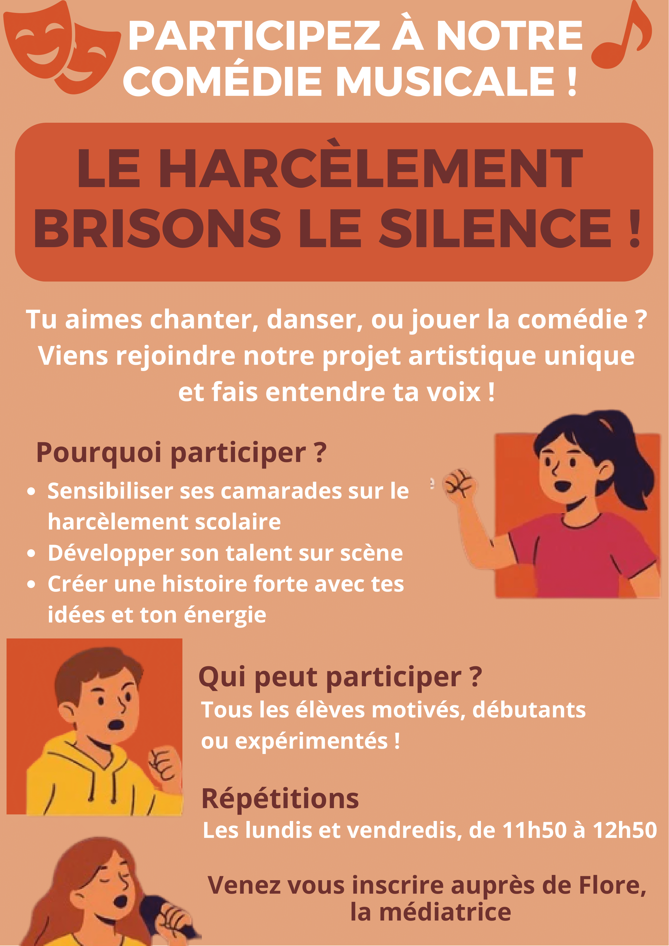 Accueil > La vie au collège > Les actions au collège > LE HARCÈLEMENT - BRISONS LE SILENCE ! La comédie musicale du collège